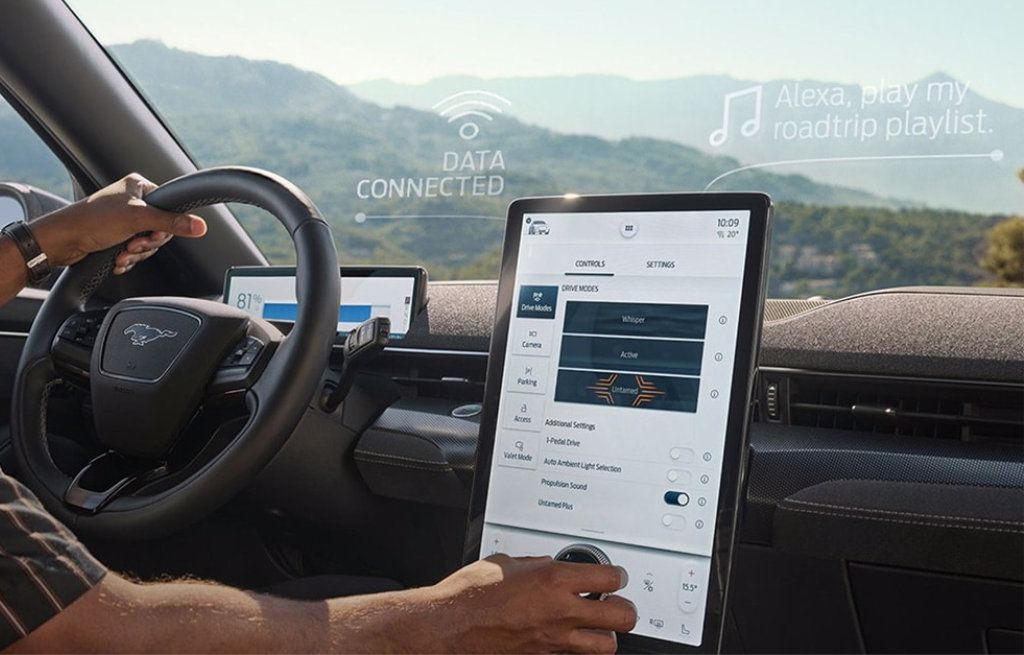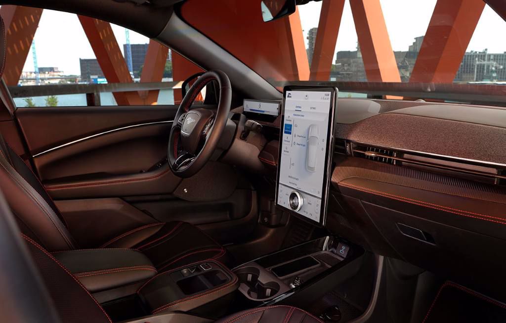 Het interieur van de Mustang Mach-E is modern ontworpen met premium afwerkingen en uniek comfort. Aangevuld met al de nieuwste technologie.