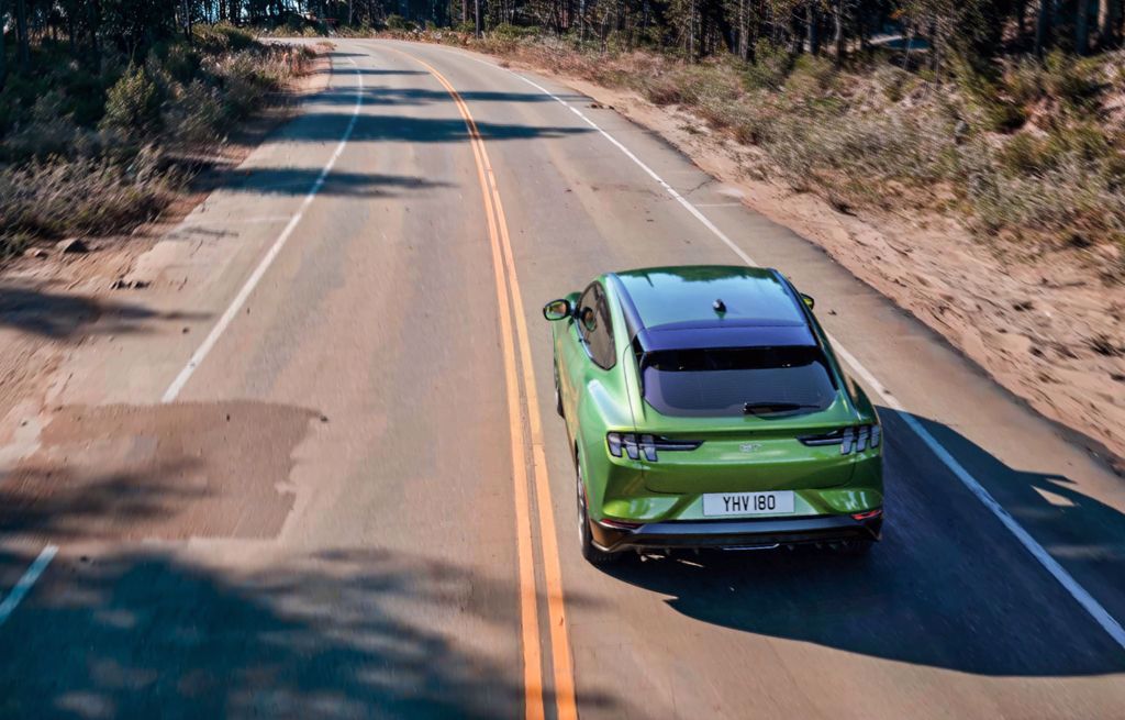 [1] Gegevens voor Ford Mustang Mach-E GT. Ford-testgegevens gebaseerd op een testmethode met een uitrol van 30 cm d.w.z. vanaf een rollende start.
